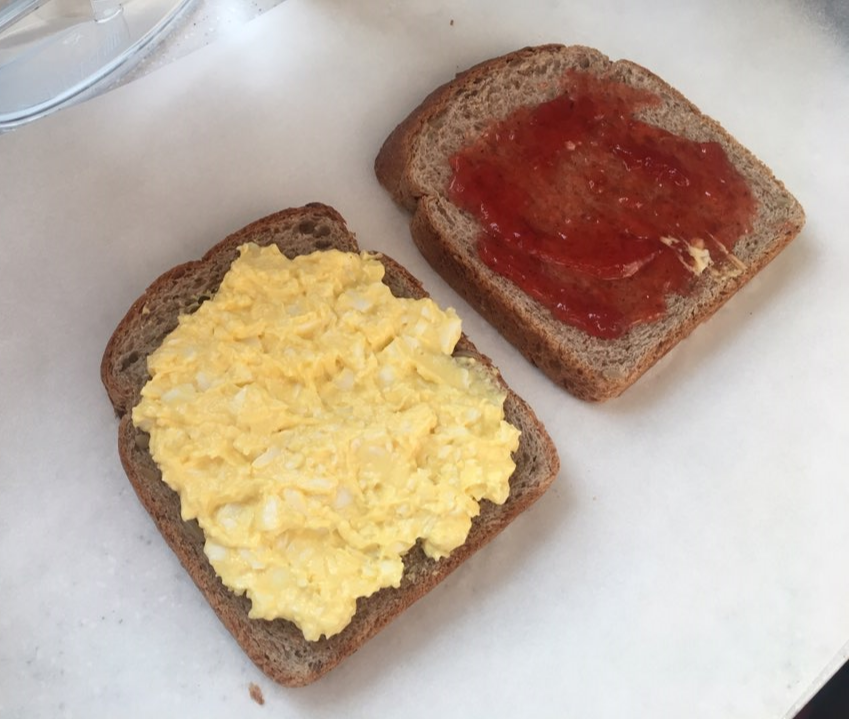 준비물 : 식빵, 딸기잼, 짜먹는에그샐러드(코스트코)